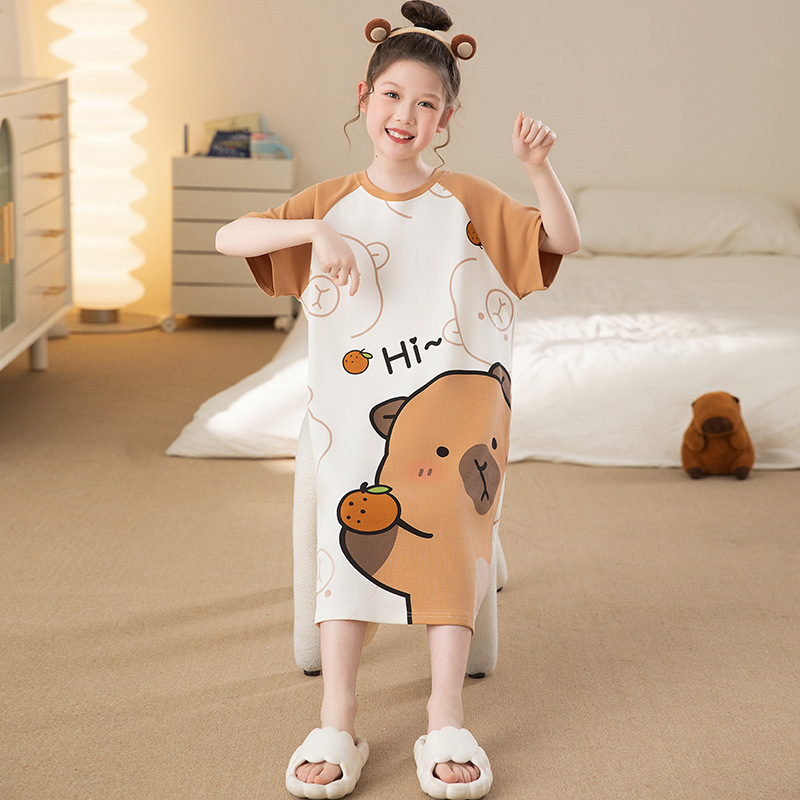親子スカートパジャマ夏半袖純綿薄い母娘漫画ホーム服セット在庫男性ウサギの毛皮