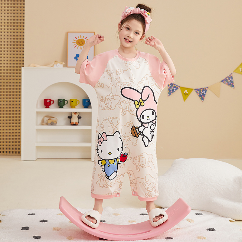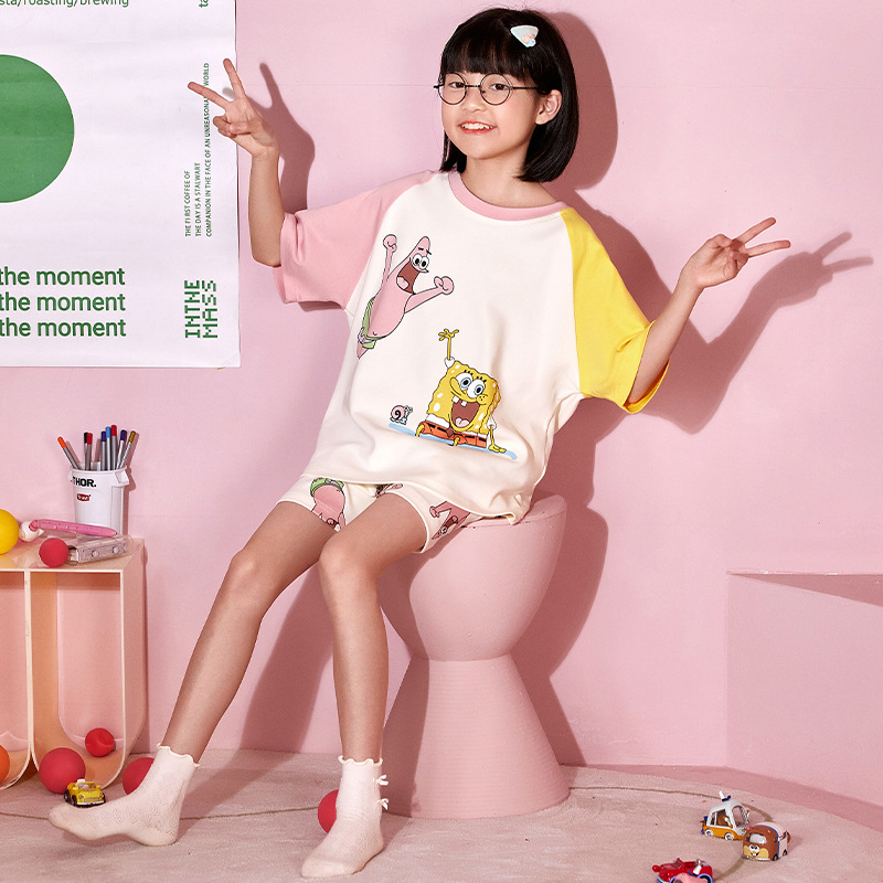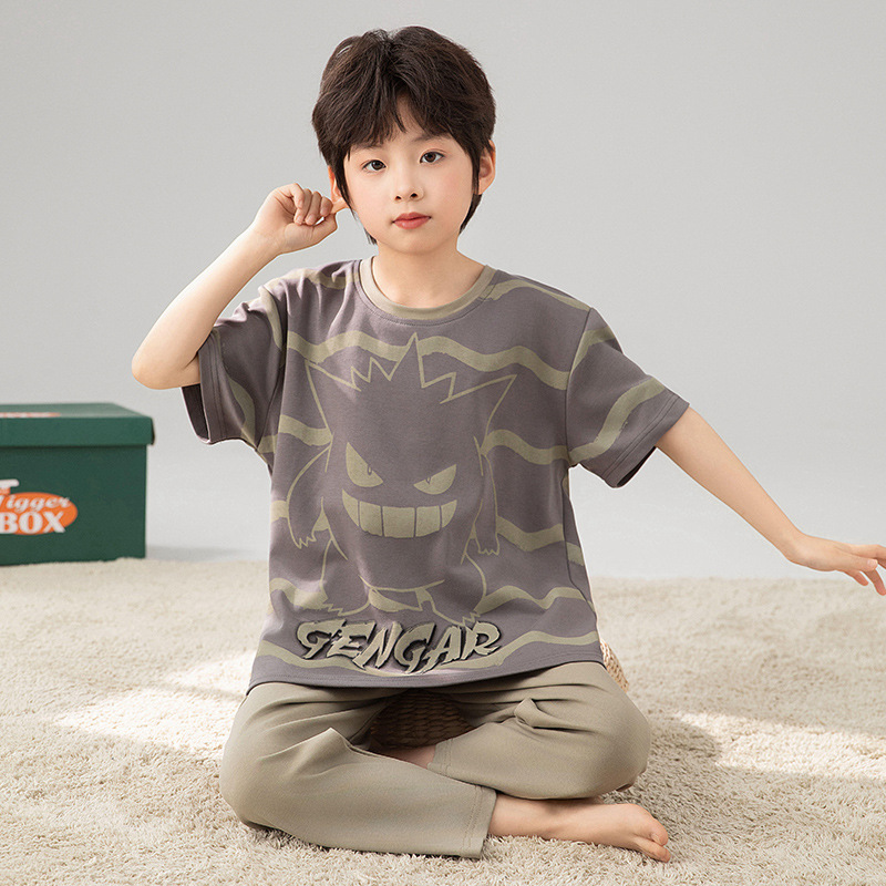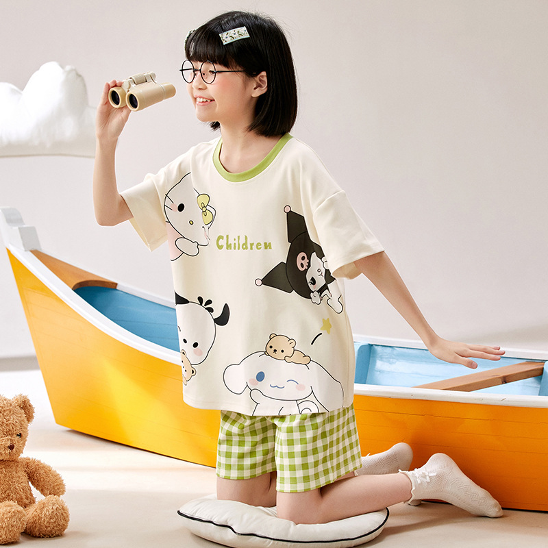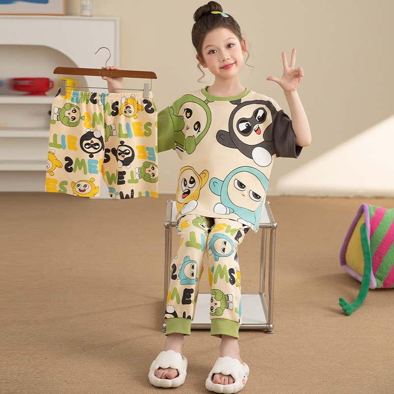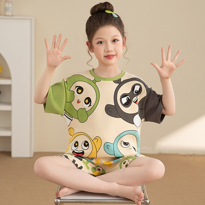 夏用子供用純綿半袖ショーツ、中型および大型子供用薄手通気性漫画空調服、中型および大型子供用パジャマ、家庭服