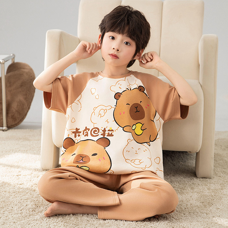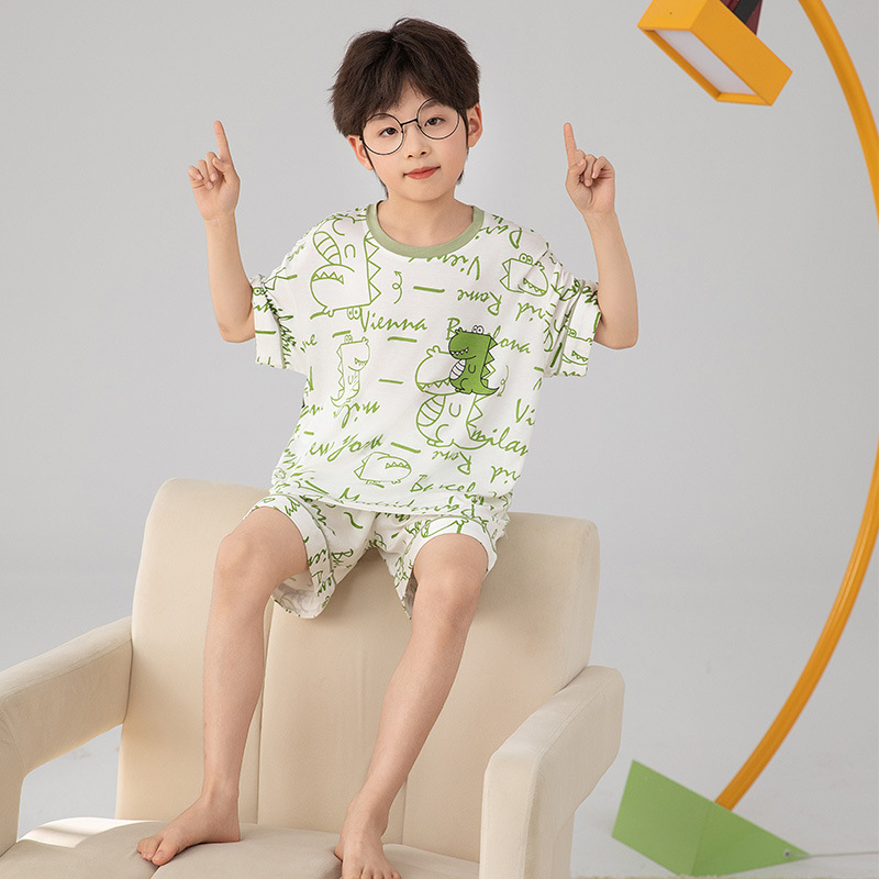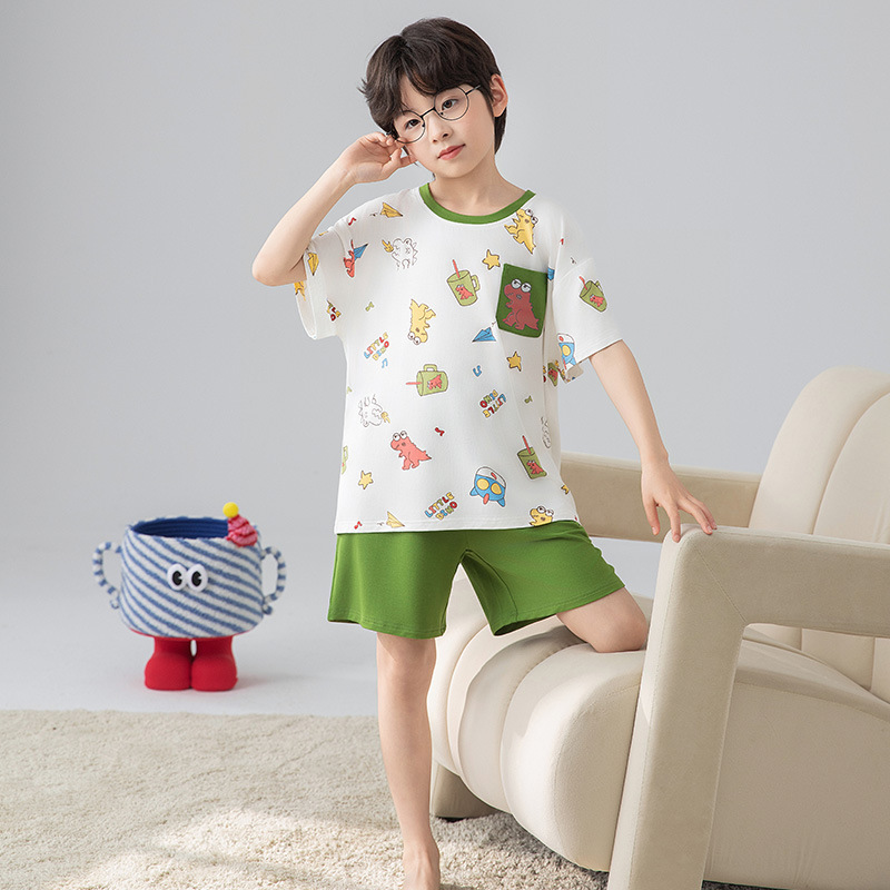 夏の子供用半袖ショーツモーダル薄い漫画空調服中型および大型子供用パジャマ夏のホームウェアセット