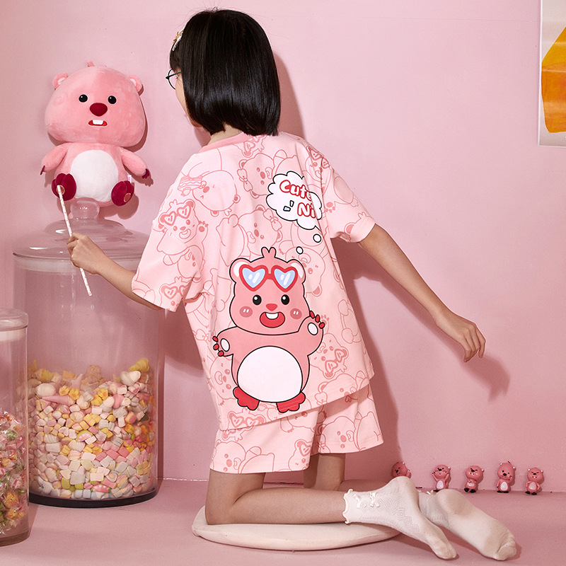 春夏女の子半袖ショートパンツ純綿スリーピース空調服ティーンエイジャーと子供の漫画ホーム服パジャマ