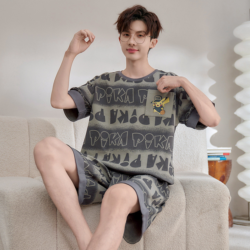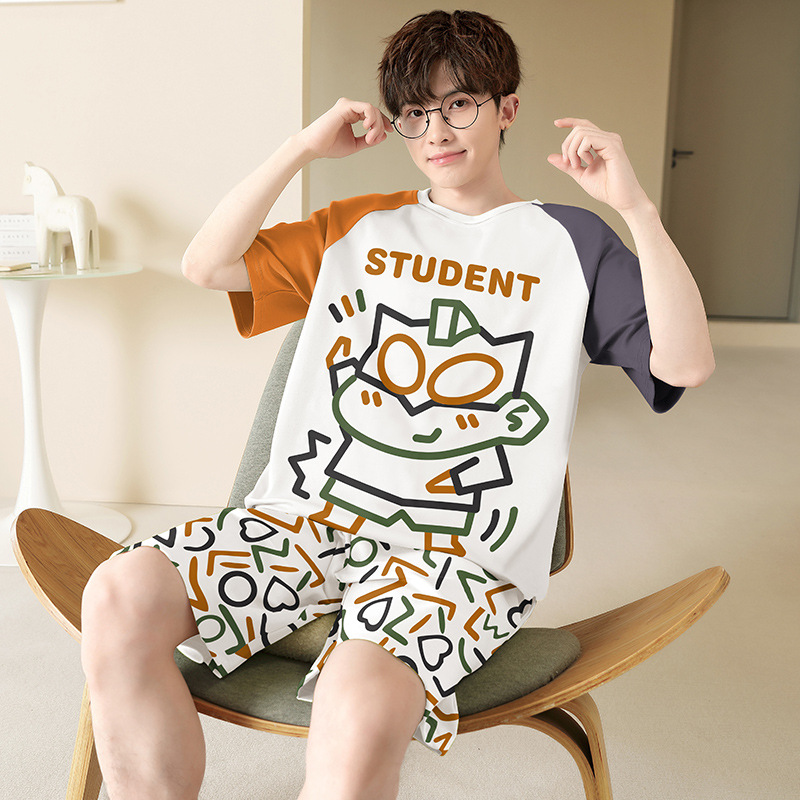 メンズパジャマ夏半袖純綿ティーンエイジャー漫画薄い男の子ホーム服セット天の既製プリント