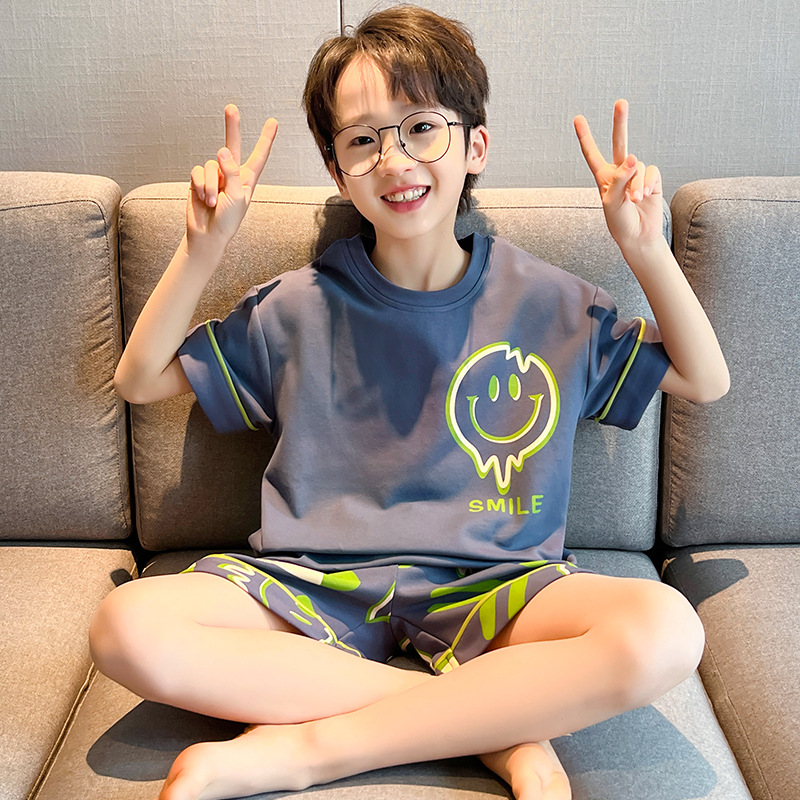 夏ティーンエイジャー男の子パジャマ半袖純綿7-9-11歳中学生ホーム服セットネザ新スタイル