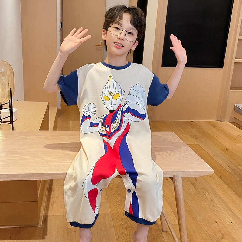 子供用パジャマ Nezha 新しいワンピース夏男の子アンチキックコールドコットン半袖中型および大型子供用ウルトラマン寝袋
