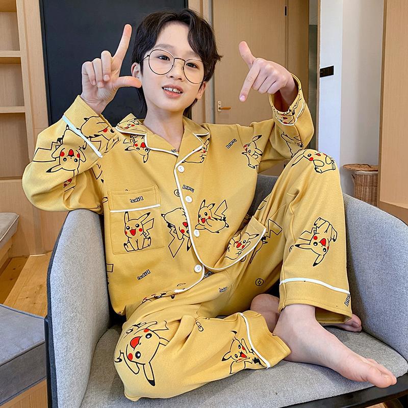 男児パジャマ純綿長袖春秋男の子中大童漫画頭子供家庭服セット外着可