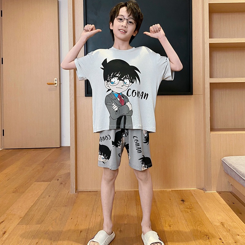 2025 新しい男の子パジャマコナン夏薄い半袖モーダルネザ大きな子供ホーム服セット夏スタイル