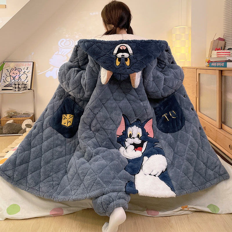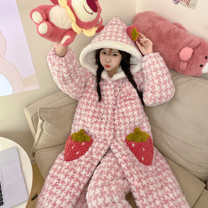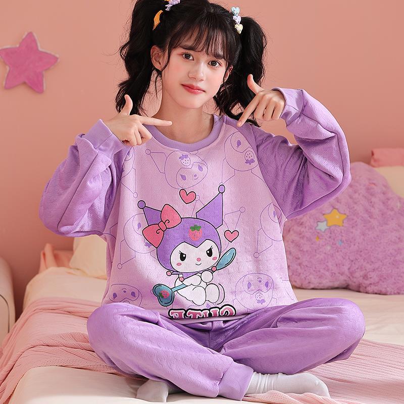 少女の寝衣セット冬のベルベットは女性のパジャマを厚くして、綿の寝衣を挟んでアニメの保温家服を着ている