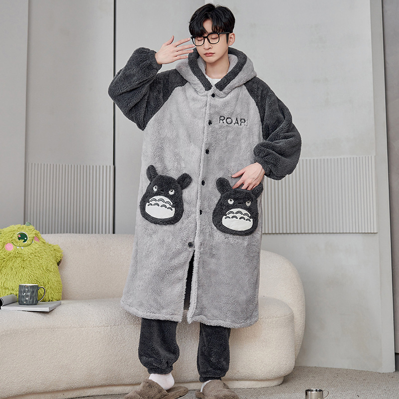 男性の新しいパジャマ秋冬金に肥料を加えてサンゴのベルベットのパジャマセット冬のフランネルのパジャマの家の服を大きくする