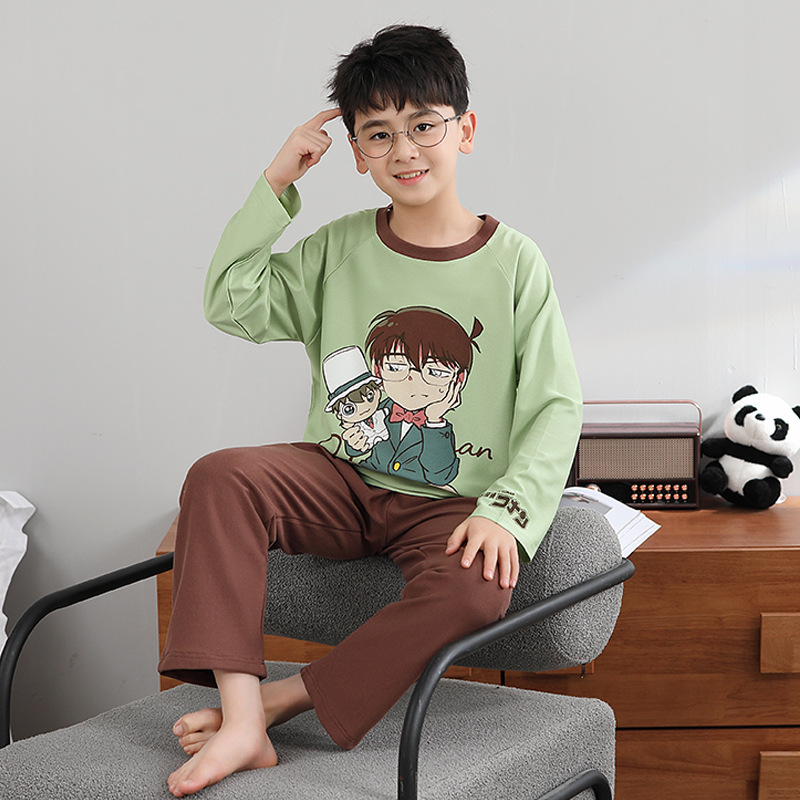 春と秋のパジャマセットクール綿の長袖の大きい子供の家の服の秋のズボンのコナンの現物
