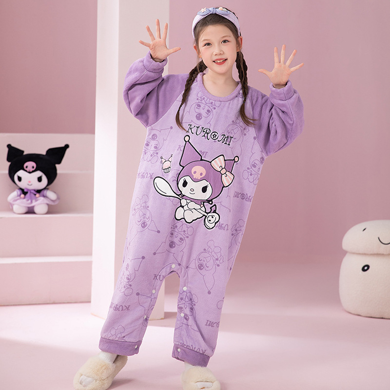 女の子の子供の連体パジャマのフランネルとベルベットの厚い寝袋の保温家庭服のお姫様の女の子の連体服