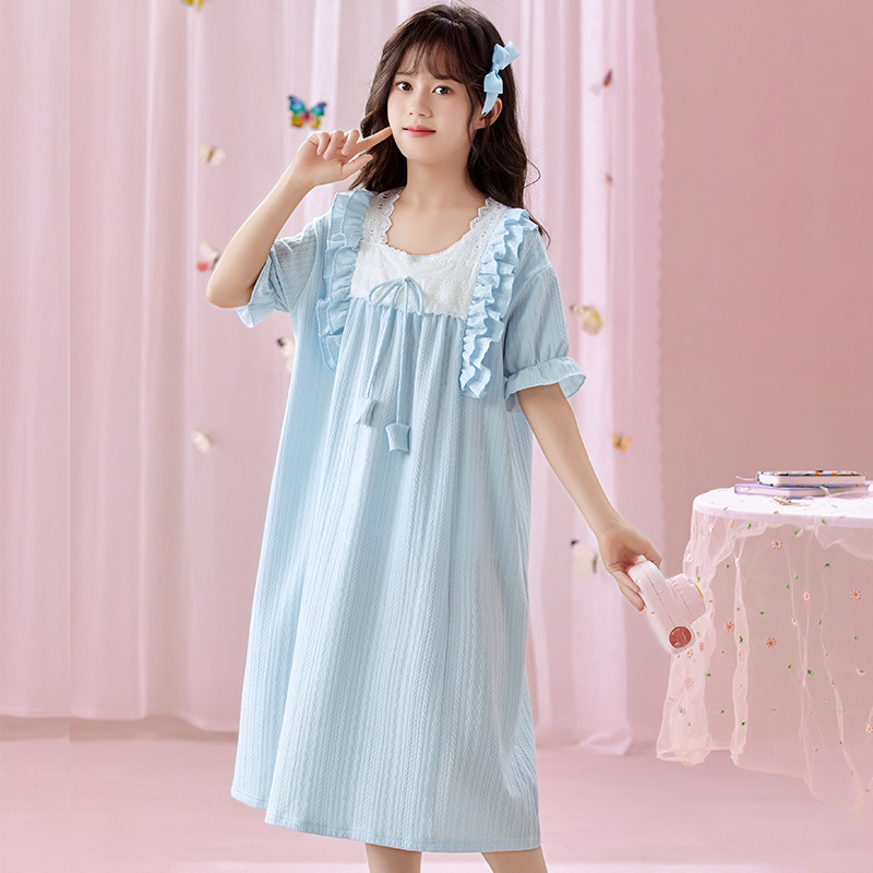 女の子寝間着夏コーマ綿新甘い宮殿スタイルレディース親子ホーム服子供パジャマ夏