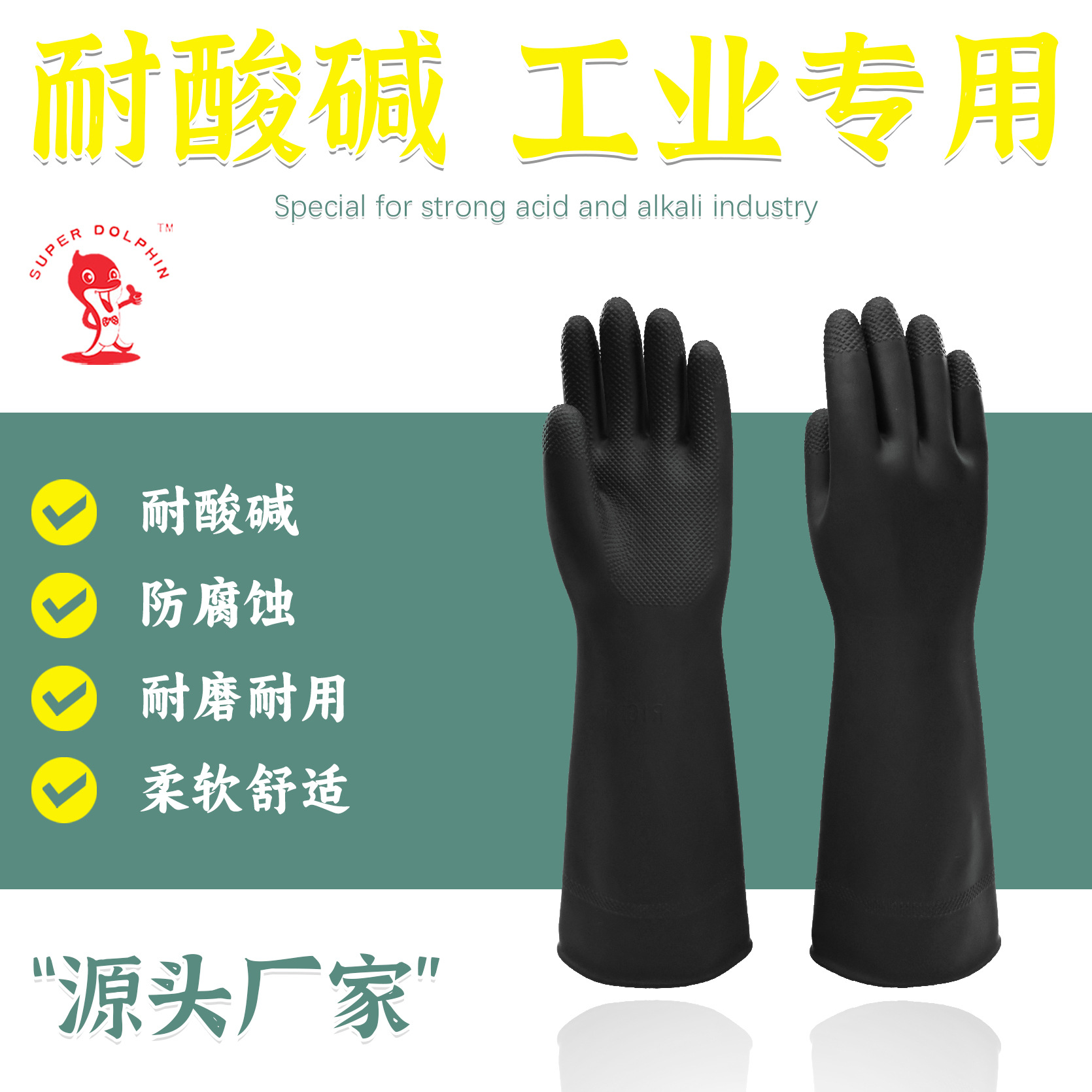 防化酸アルカリ手袋厚さ延長工業耐摩耗黒色ゴム防腐食ラテックス防水手袋