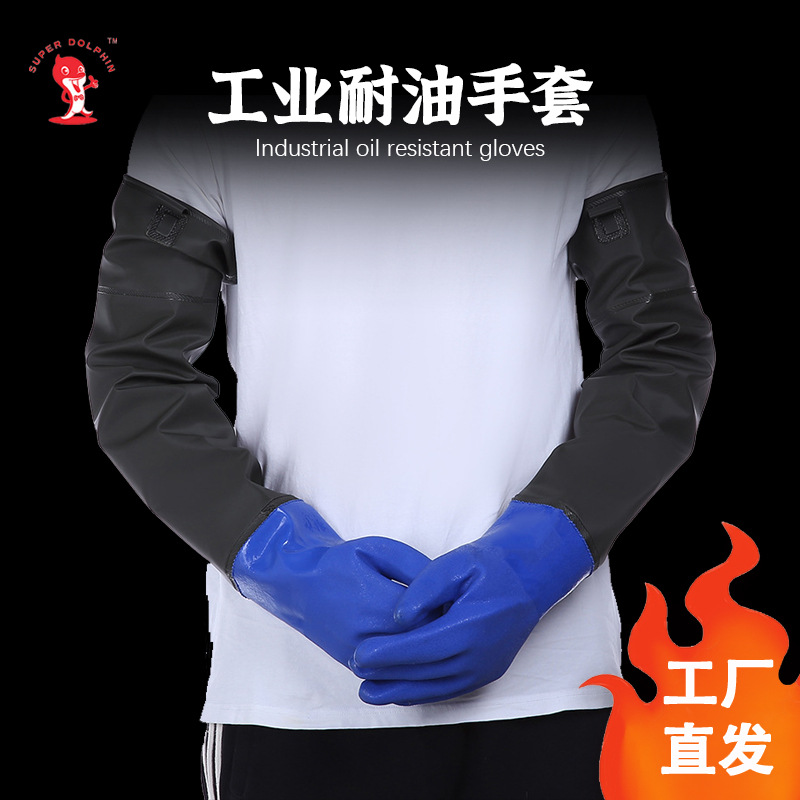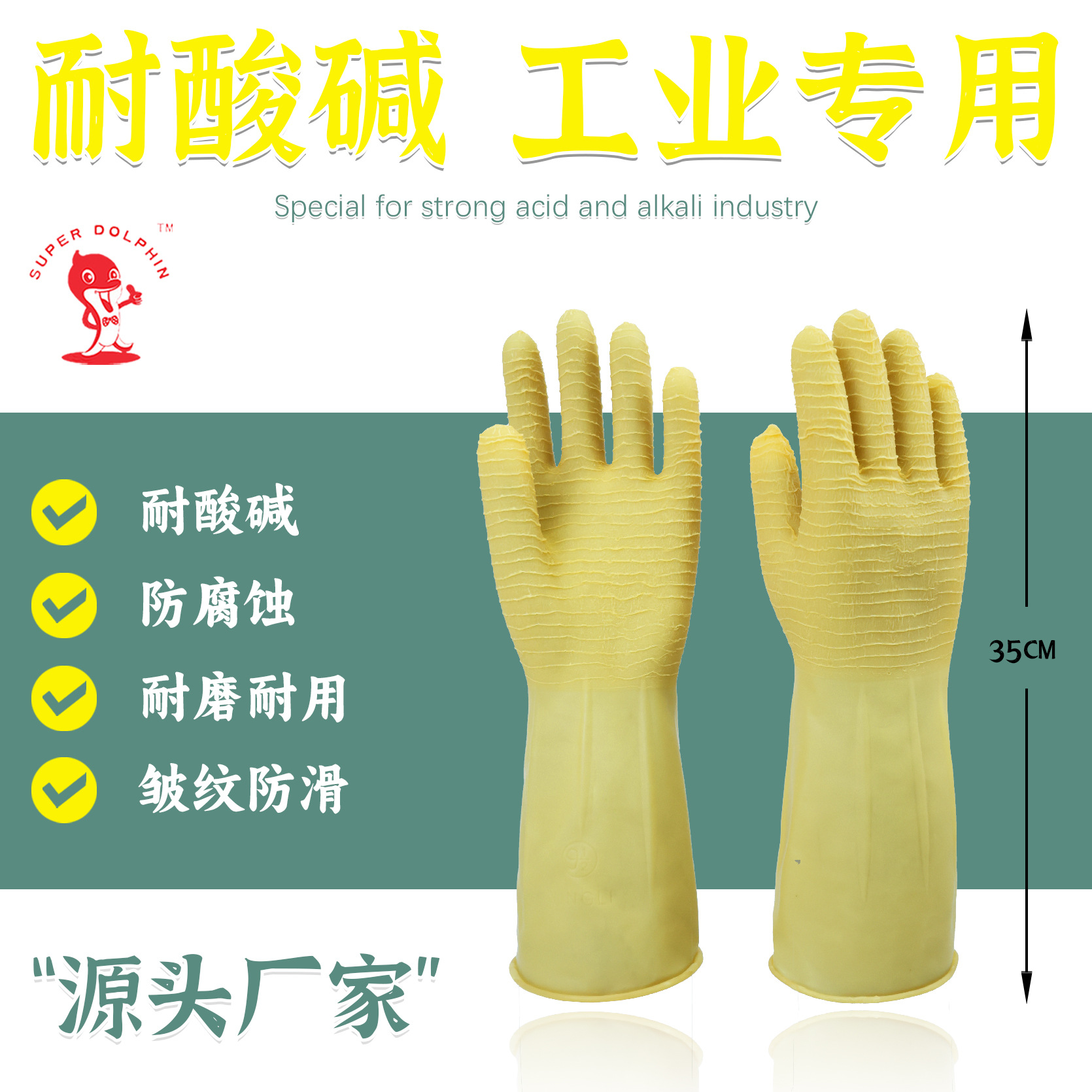 スポット速発35cm光沢面工業防化酸耐アルカリ防化滑り止め巻きゴム手袋工場直発
