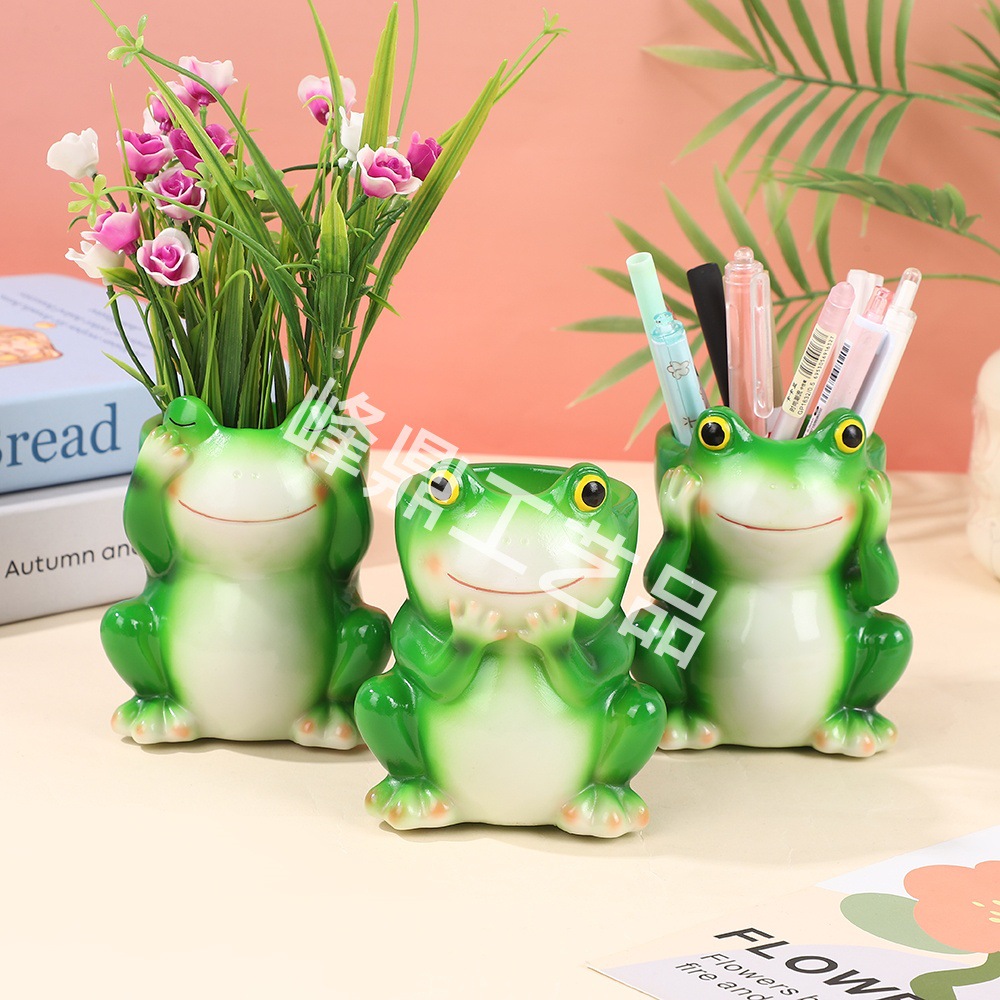 かわいい小さなカエルの装飾品オフィスデスクトップストレージチューブは聞かない、話さない、見ないプラスチッククラフトフラワーアレンジメント装飾