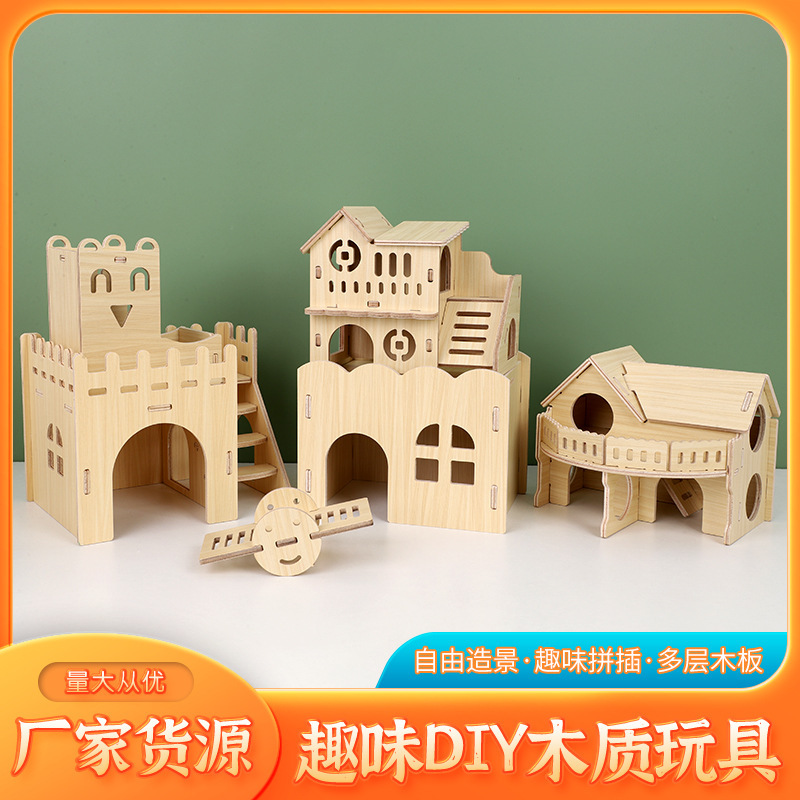 メーカー卸売りハムスター実木家階段睡眠巣金糸熊ハムスター単二重別荘ハムスター玩具用品