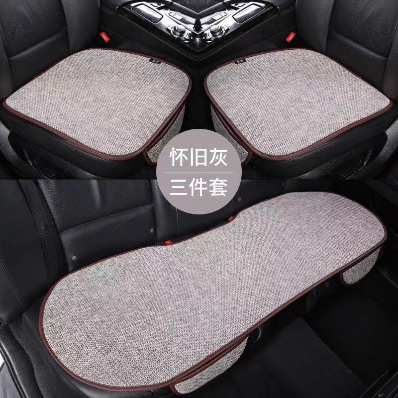 オールシーズン対応カーシートクッション3点セット、一体型リネン背もたれなしカーシートクッション、後部座席カバー、ハーフパックシート