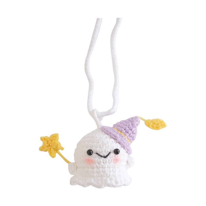 手作りdiy毛糸編み小幽霊ストラップ自動車内平安符ペンダントアクセサリー材料バッグ自作プレゼント