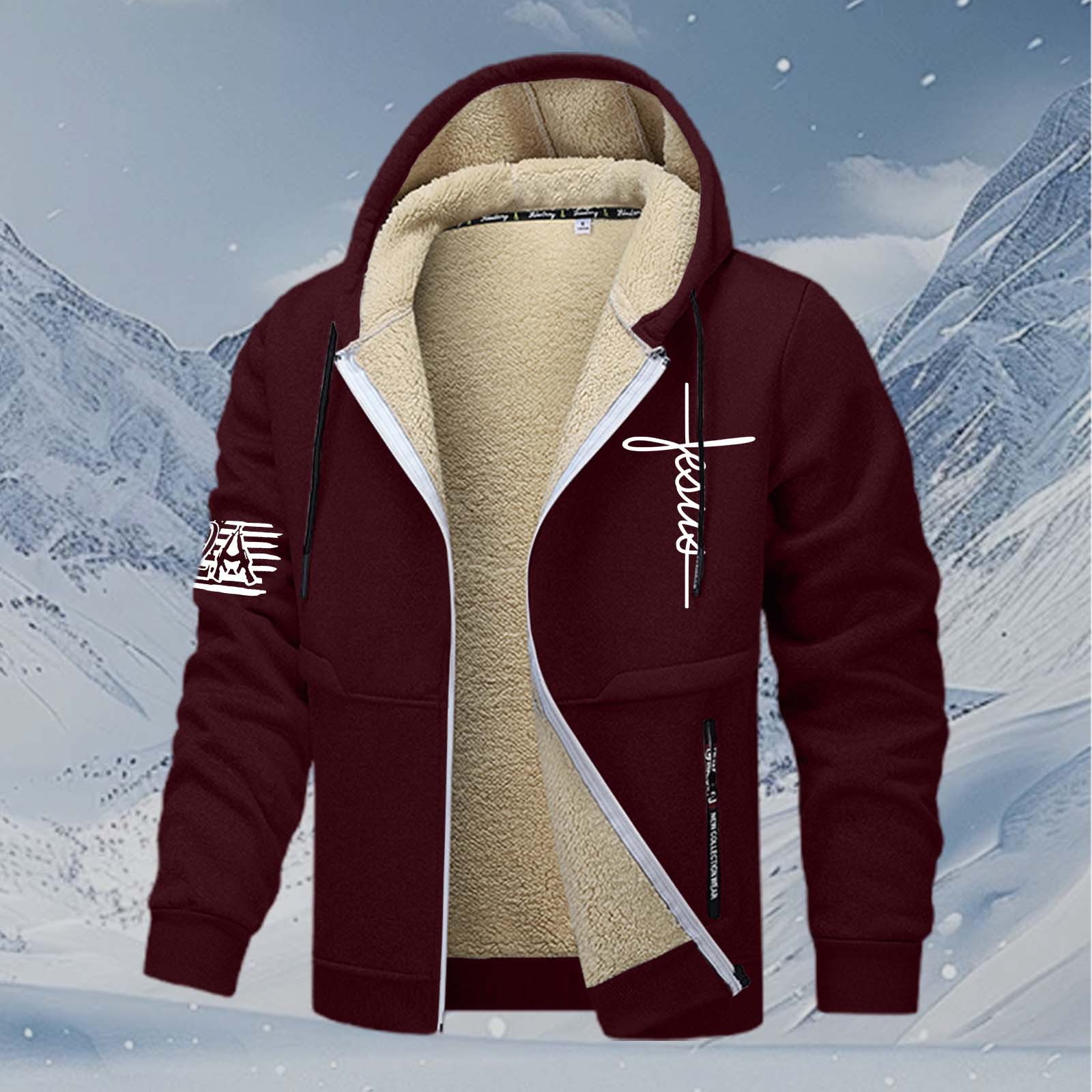 国境を越えた子羊のベルベットの男性のガーディアンは秋冬にベルベットを厚くして帽子のスポーツウェアのカジュアルなカーディガンの保温コートを厚くした