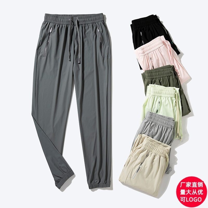 メーカー卸売夏の新しい女性用アイスシルクパンツ、通気性のあるアイスシルクウエストバッグ、高品質のカップルパンツ、大きいサイズのストレートレッグクローズ