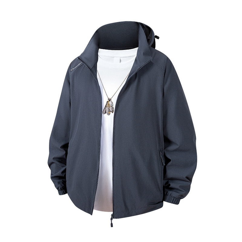 春と秋の新型アウトドアカジュアルジャケット男女同モデルの帽子付きのゆったりとした防風耐摩耗性通気性トレンチコート男