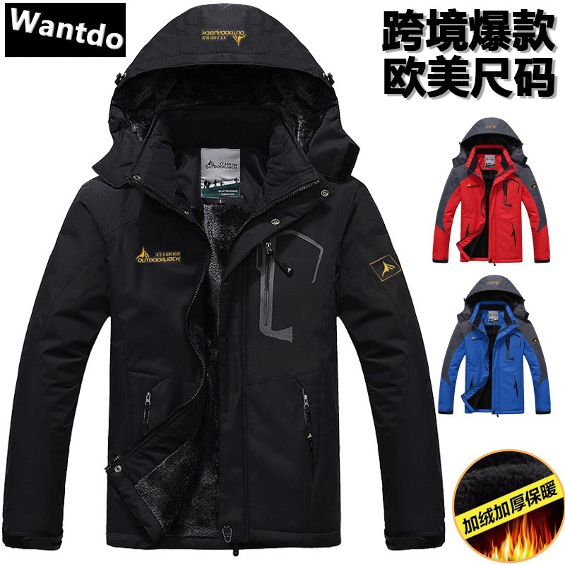 アマゾンのエビの皮の屋外のカップルの突撃服の大きいサイズのベルベットは防風を厚くして保温綿入れのコートの男に乗ります。