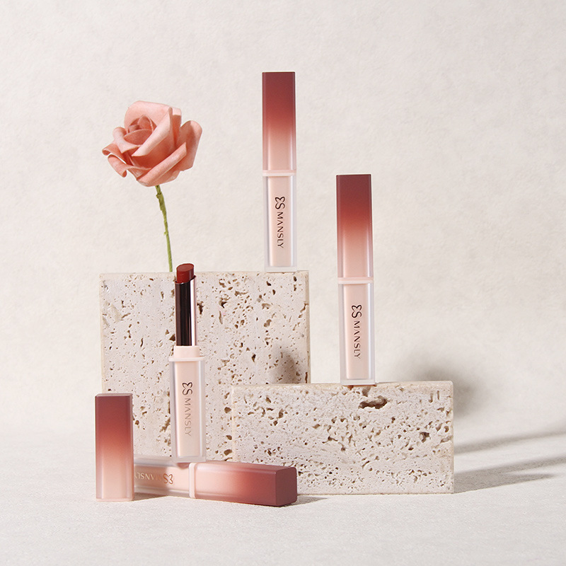 曼詩麗粉霧甘い口紅霧面のつや消しシルクの発色がカップリップクリームをつけにくいです。