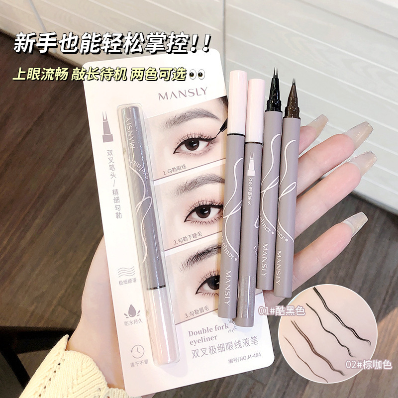曼詩麗双叉繊細アイライナークール黒顕色初心者は色付けしやすいです。