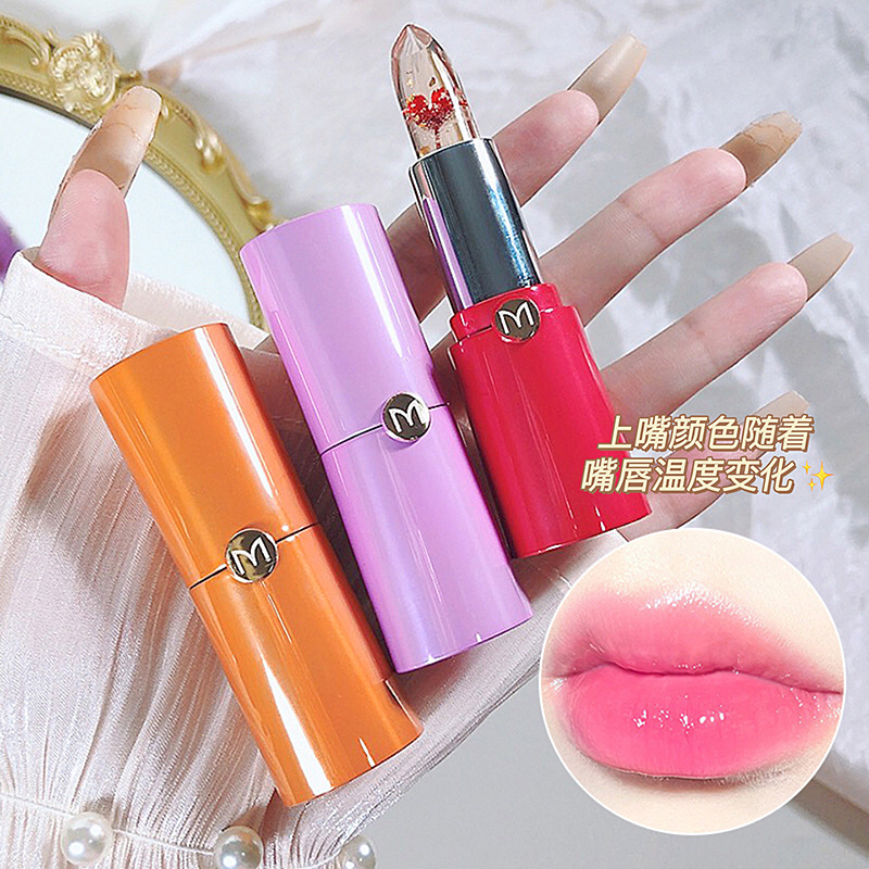 曼詩麗生花水晶変色口紅透明ゼリー金箔口紅温変口紅は学生の女性をつけにくい