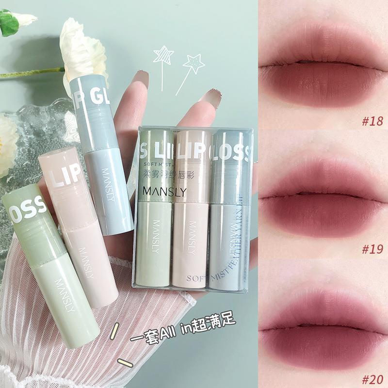 曼詩麗柔霧羽紗唇彩ベルベット霧面唇釉薬三本セットは学生の平価メーキャップをつけにくい
