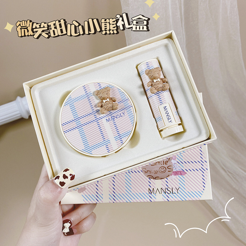 曼詩麗小萌熊礼箱カバーコンシーラーbbクリーム霧面マット口紅セット少女心学生女子メーキャップ