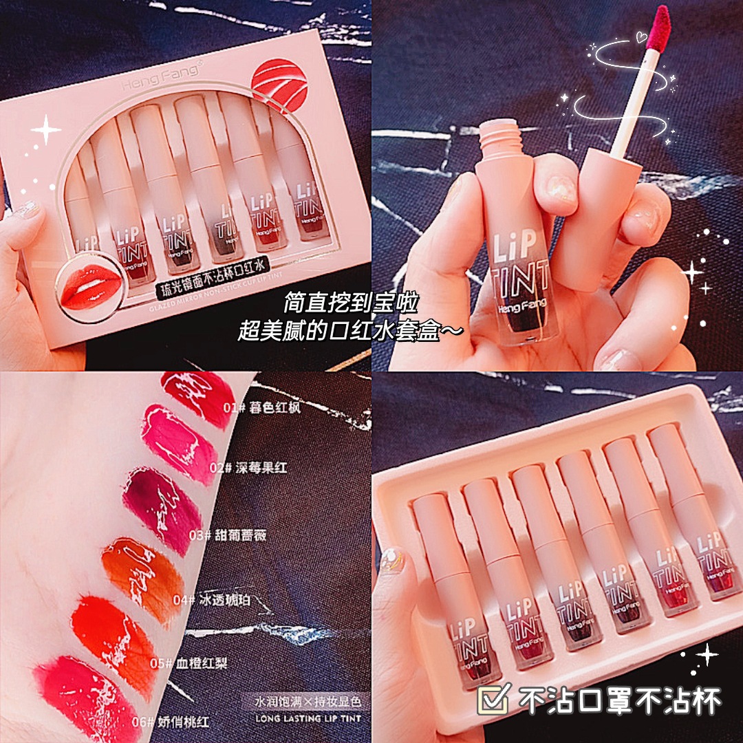 恒芳六本はコップの口紅の液体の水の光の鏡面の唇の釉薬のセットをつけないで、色の唇の色の学生の女性の化粧品を脱いではいけません。