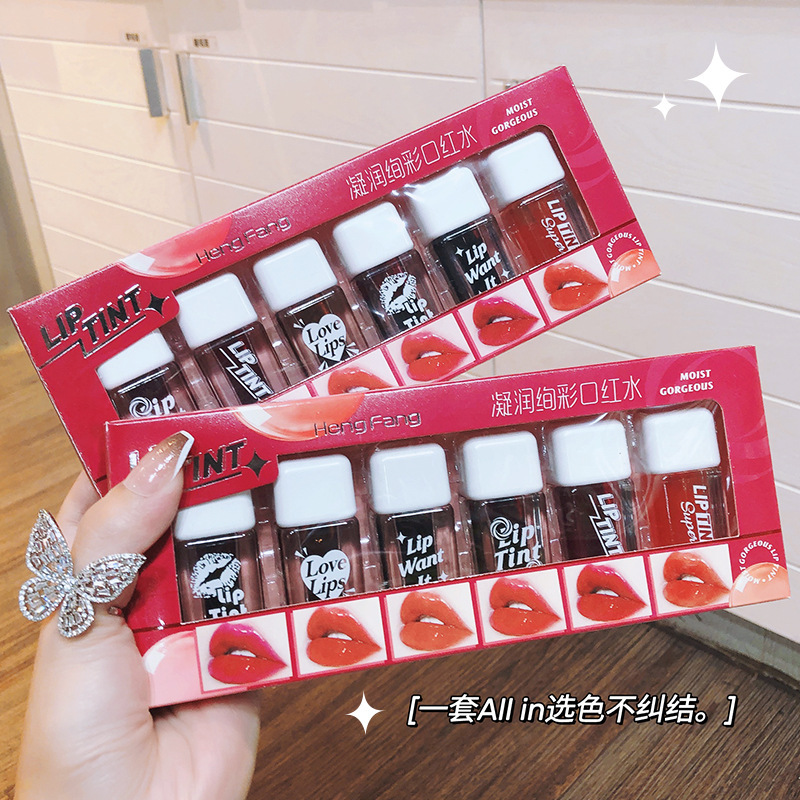 恒芳六本の口紅の水のセットの水の光の鏡面の唇の釉薬は白くて、カップの初心者の学生の女性の化粧をつけにくいです。