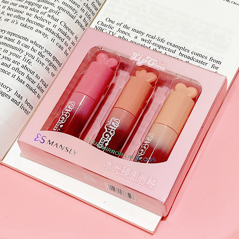 Mansili ウォーターライトミラーリップグレーズ 3 パックセット保湿と発色が良く、カップに付着しにくいリップグロス学生向けの手頃な価格のメイクアップ