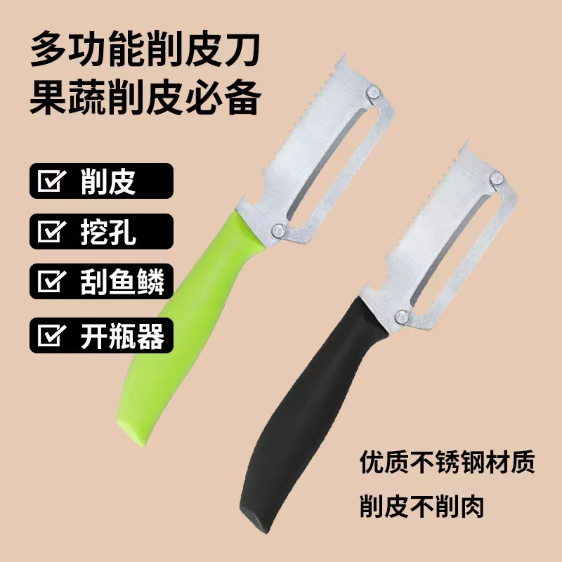 多機能の皮むき刀は鋼の皮むき器の台所の専用の瓜削りの果物のツールの2つの1つの瓜削りのサトウキビの刀を誘いません。