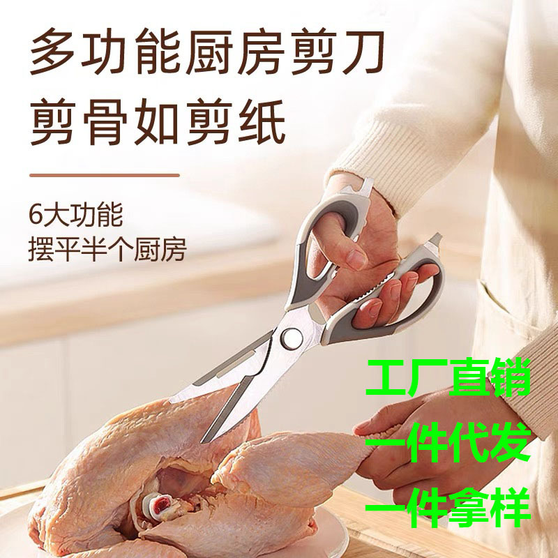 スポットキッチンはハサミ家庭用ステンレス強力骨ハサミ多機能焼き肉食品ハサミを多く使う