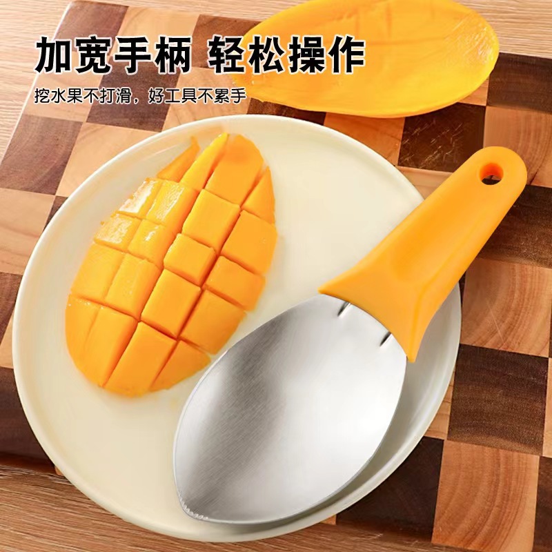 マンゴーは丁粒の果物を切って皮をむいて分離器を切ってマンゴーの神器を切って果肉を取ってスプーンの果物の核の分離器の果皮の刀を掘ります。