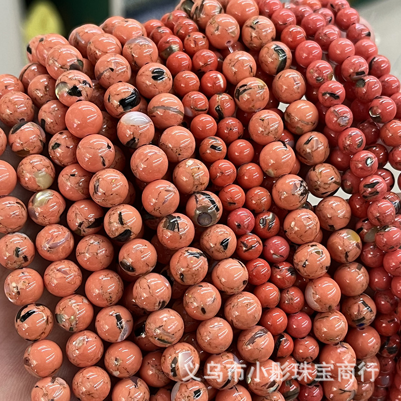 メーカー直販合成オレンジ色貝殻松石玉散珠手串ネックレスdiyアクセサリー部品半製品