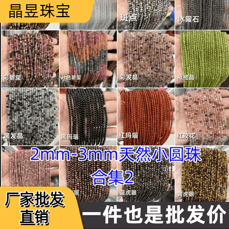 2mm3mm小玉散珠米珠隔珠天然水晶碧璽虎眼石珠鎖diyアクセサリー半製品