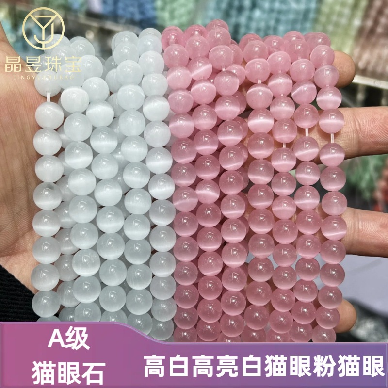 卸売り高白ハイライト白猫眼石散珠粉猫眼石円珠ブレスレットdiyアクセサリー部品半製品