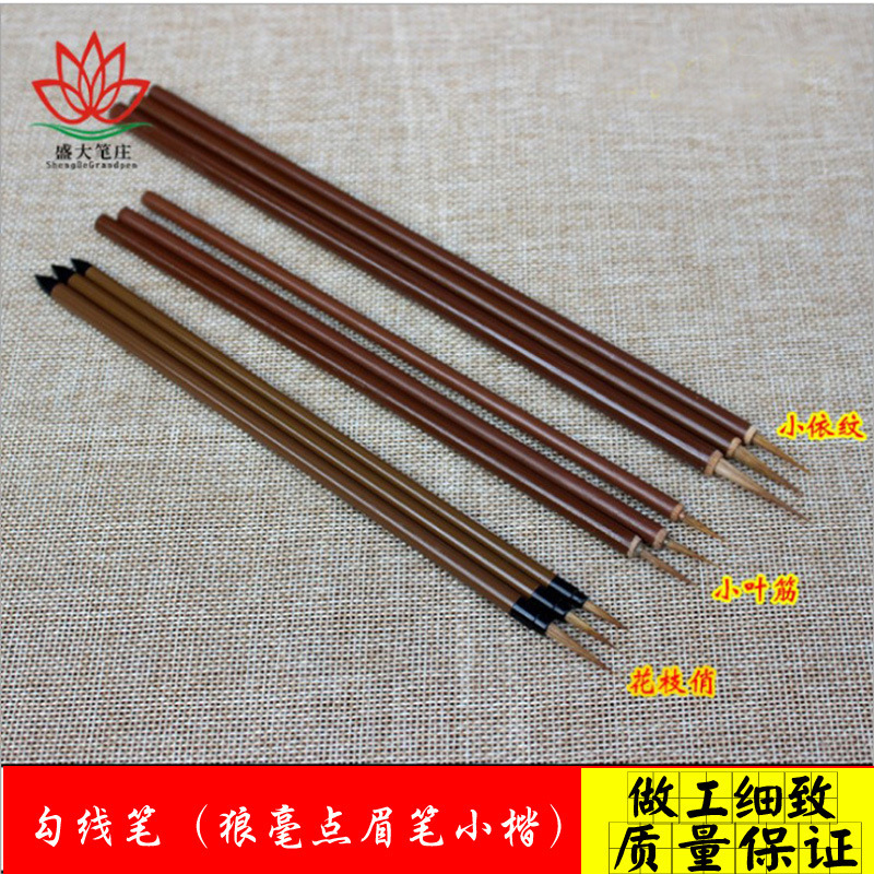 赤い毛の線の筆の小さい楷書のやせた金の体の筆の白は書道の紫のミリとミリの書道の線の辺の絵画の文房をなぞります。