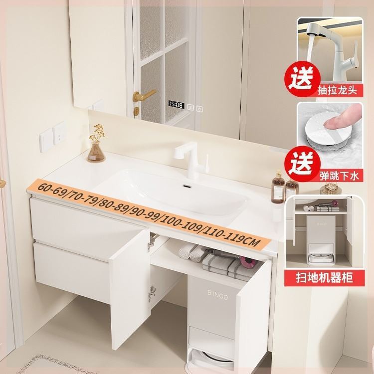 一体型セラミック洗面器ハニカムアルミニウムバスルームキャビネット 77/87/97/107/117 掃除ロボットベースステーション洗面台