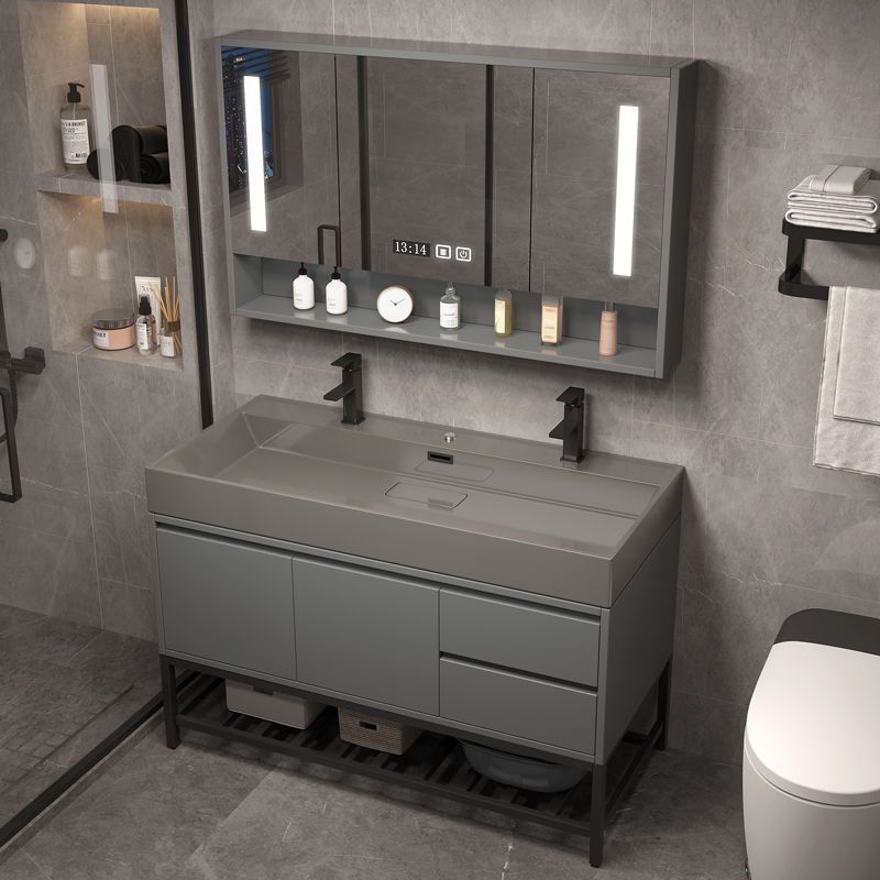 シンプルな公共床置きトイレバスルームキャビネット洗面台ダブル洗面台組み合わせ大理石洗面台グレー