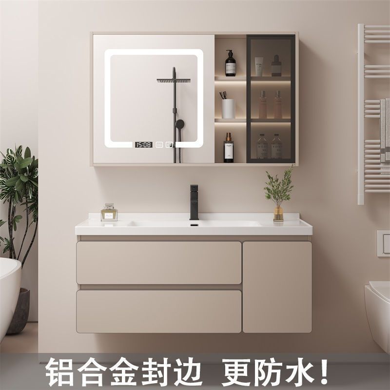 アルミ合金封辺陶磁器一体浴室キャビネットセット現代シンプルトイレスマートキャビネット洗面台洗面台洗面台