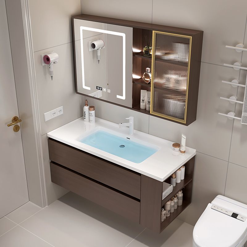 新しいサイドシンクセラミック一体型バスルームキャビネットコンビネーションバスルーム無垢材洗面台スマート手洗い洗面台