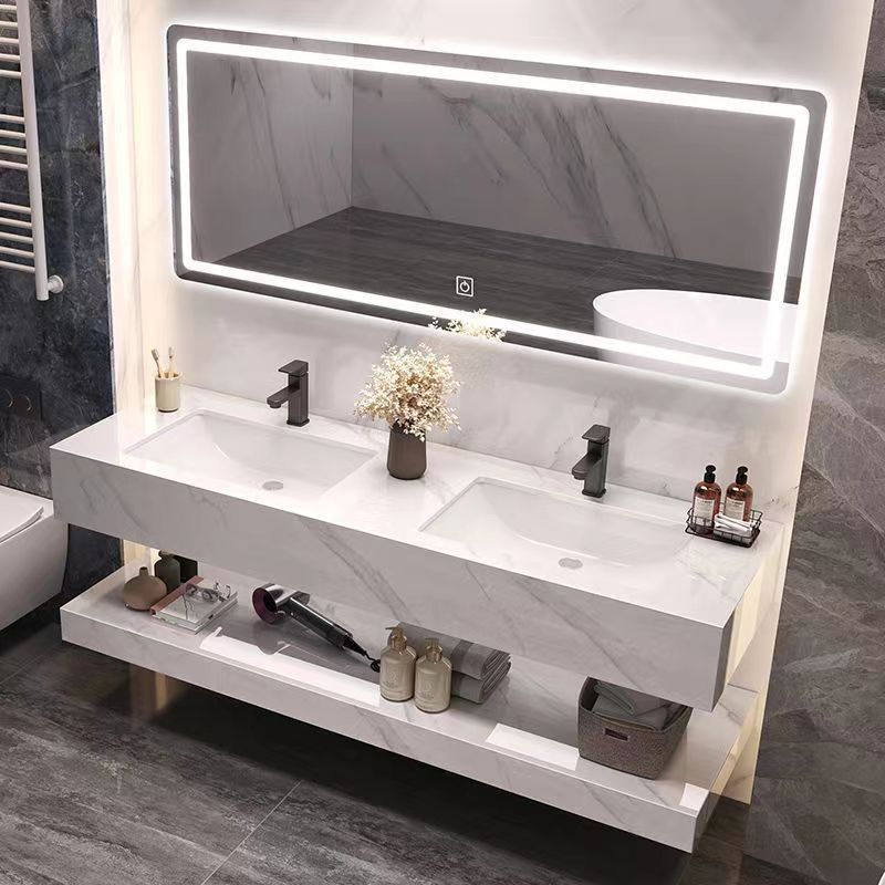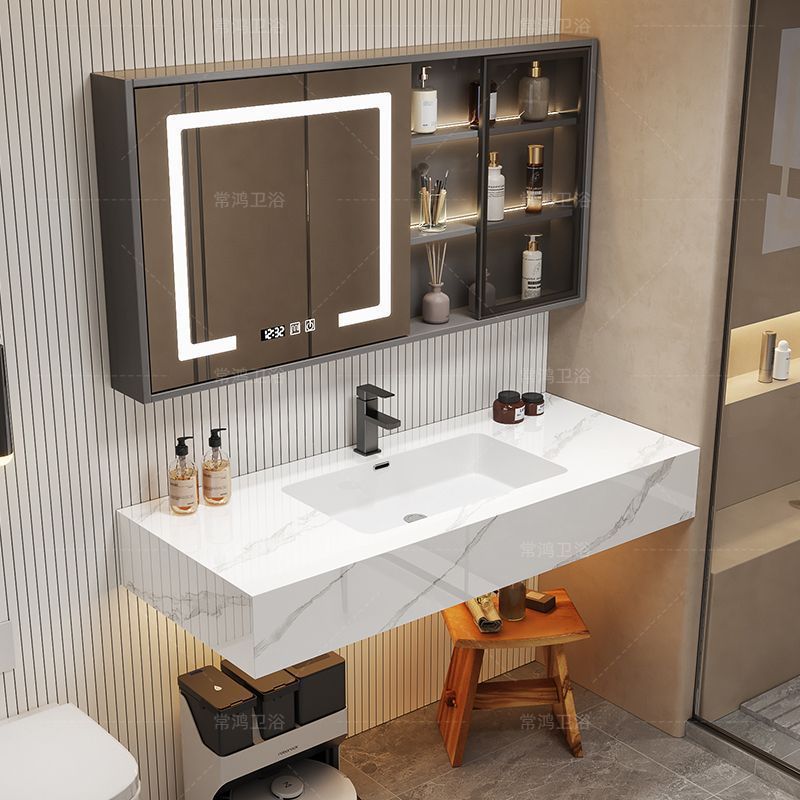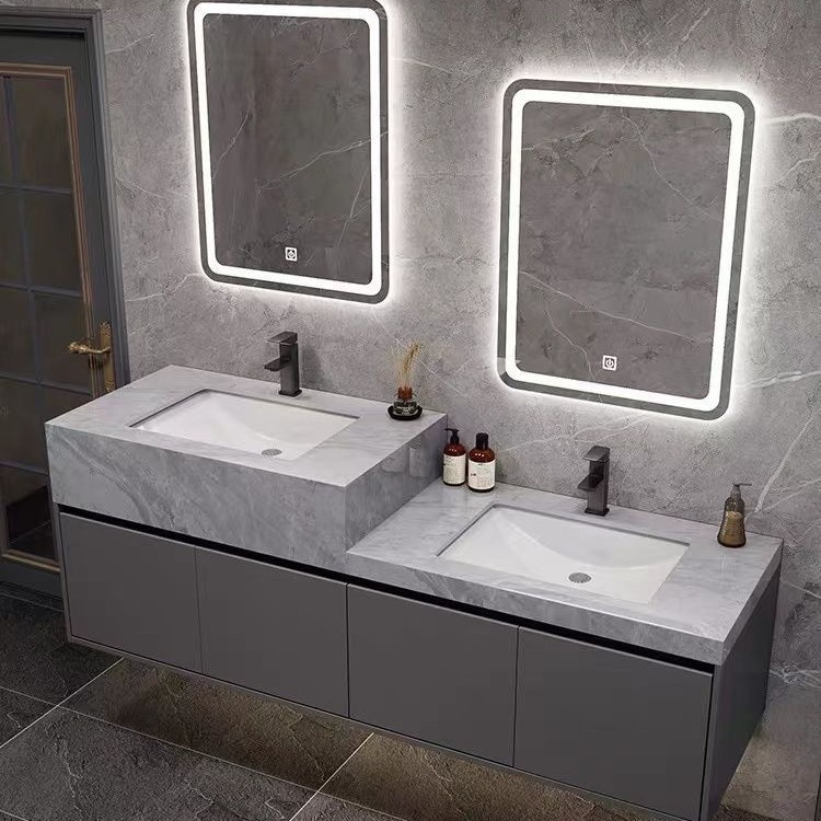 ホテルとB&Bのライト高級二層スレートバスルームキャビネットウォッシュコンビネーションモダンシンプルオールインワン洗面台高級スマートミラーキャビネット