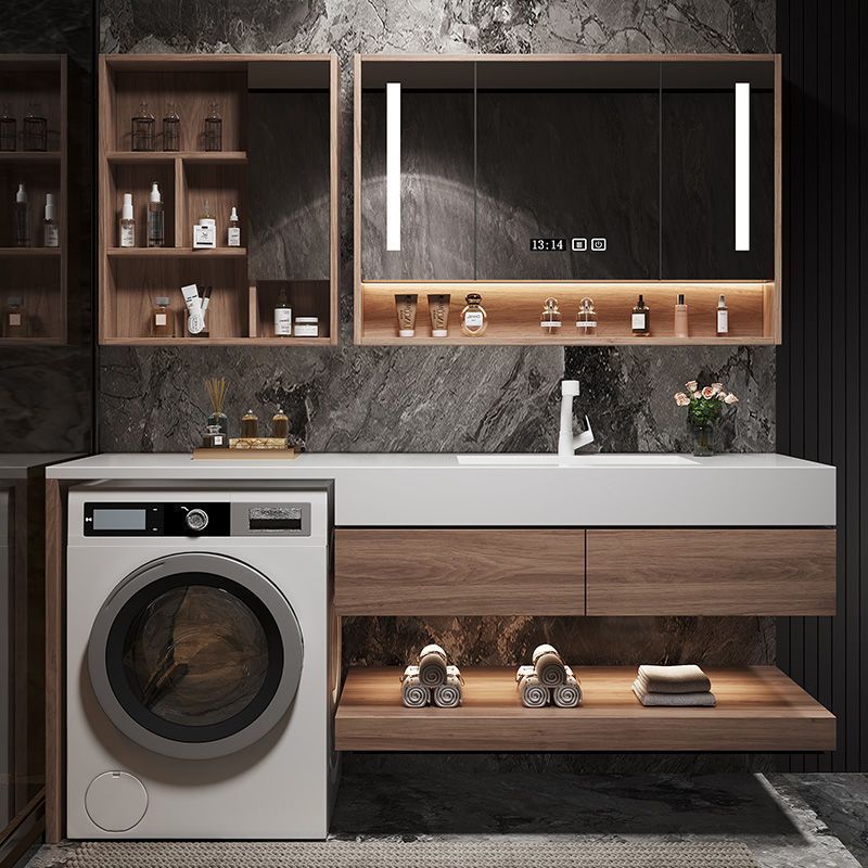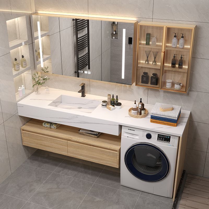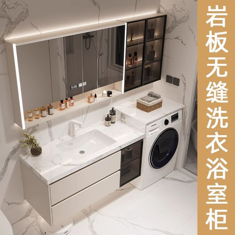 モダンなロックボードバスルームハニカムアルミニウム洗面台キャビネット一体型シームレス洗濯機バスルームキャビネットサイド収納加工