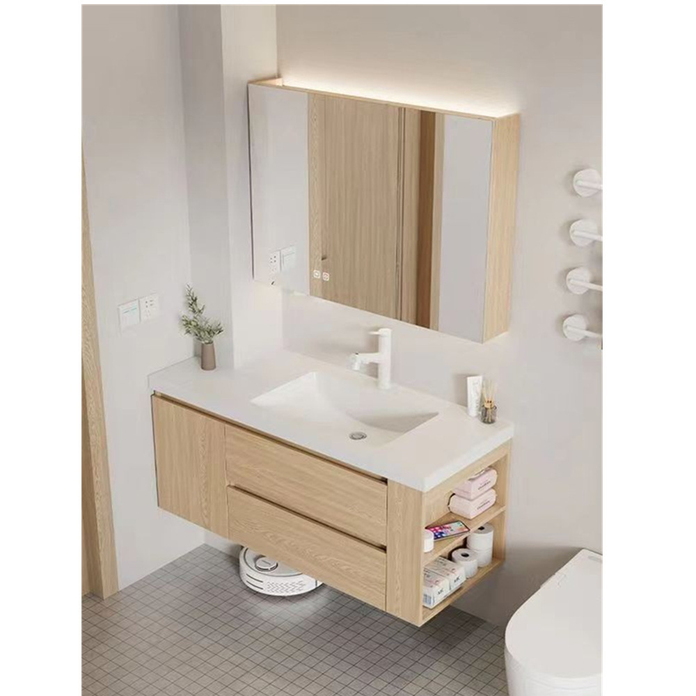 軽豪華な実木浴室キャビネットセット大戸型トイレ洗面台化粧台洗面器一体キャビネットスマートミラー加工