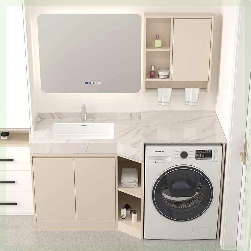 加工洗濯機一体型キャビネットバルコニー岩板シームレスセラミック洗面器浴室キャビネットセットシンプル洗面台洗面器