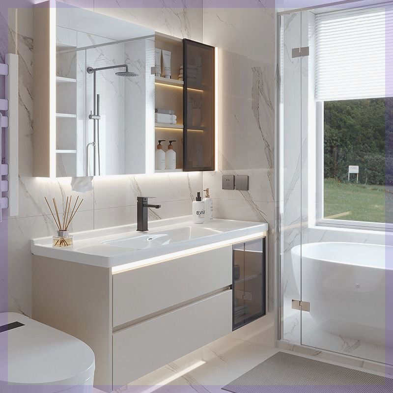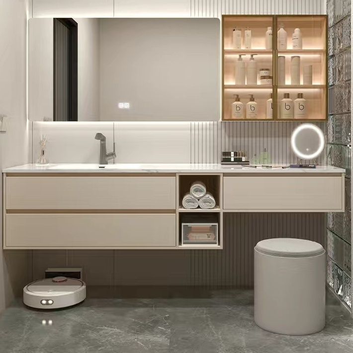 シンプルな岩板一体盆熱曲げ浴室キャビネットセットトイレクリーム風化粧台手洗い洗面台