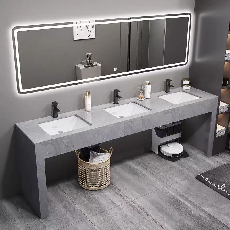 軽豪華岩板シームレス浴室キャビネット化粧台一体トイレ洗面台洗面台化粧台セットグレー
