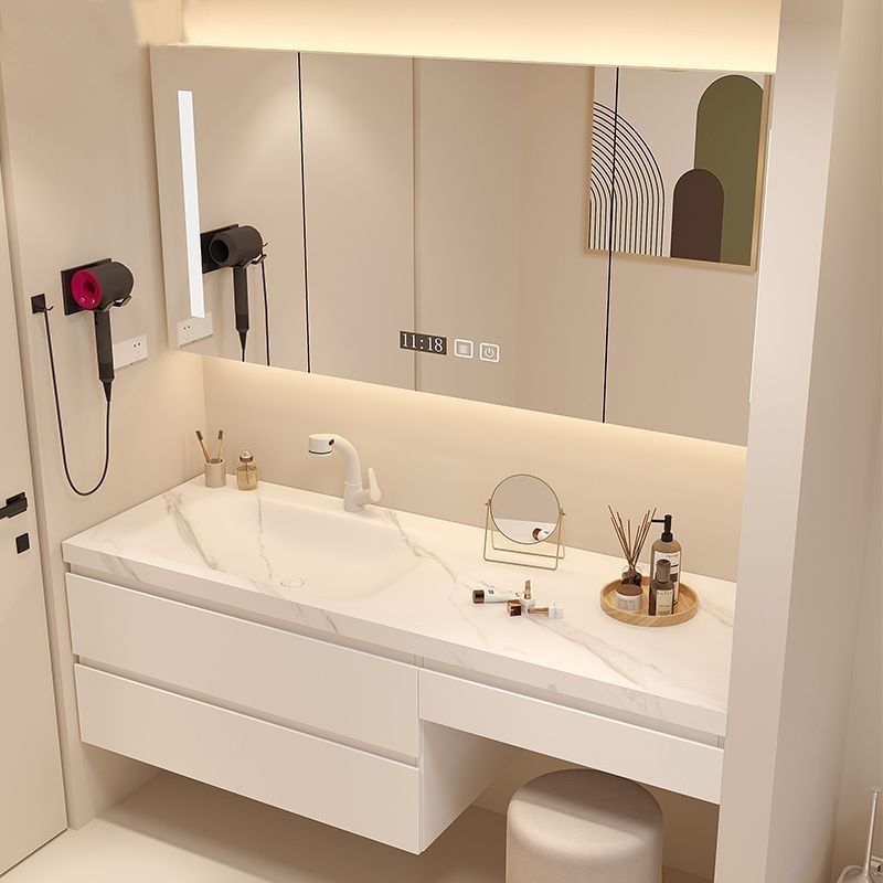 Corian ライムストーン熱曲げ一体型ドレッシングテーブルシームレスライムストーンハニカムアルミニウムバスルームキャビネット化粧キャビネット洗面台
